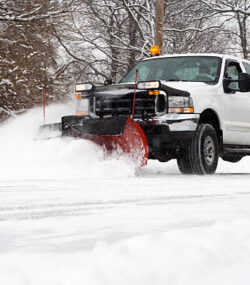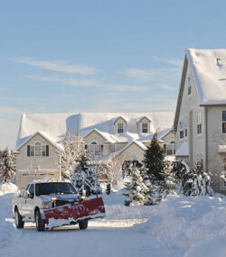 Huntington, New York, USA – February 10, 2013: Plow cleaning neighborhood street after the February 8th blizzard hit the north east region of the USA dumping at least two feet of snow in the area.
